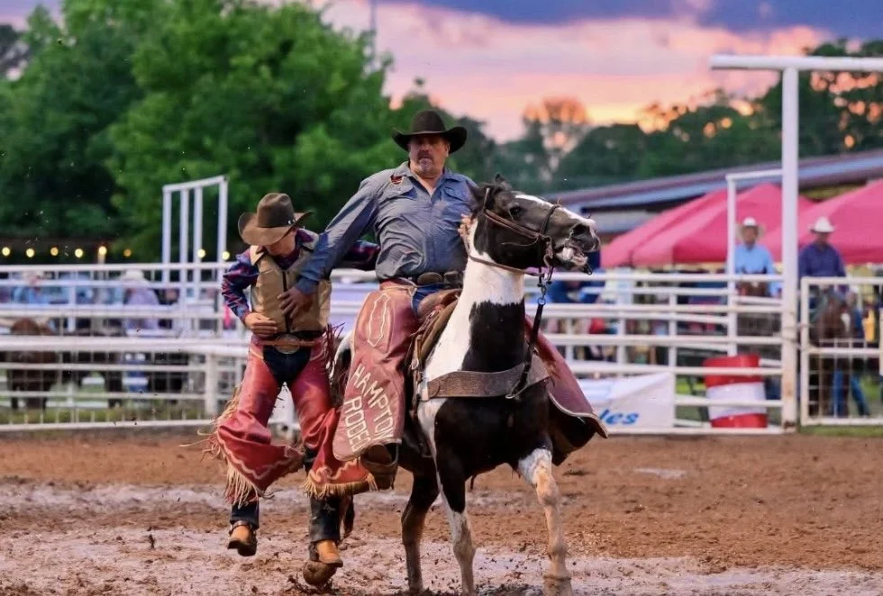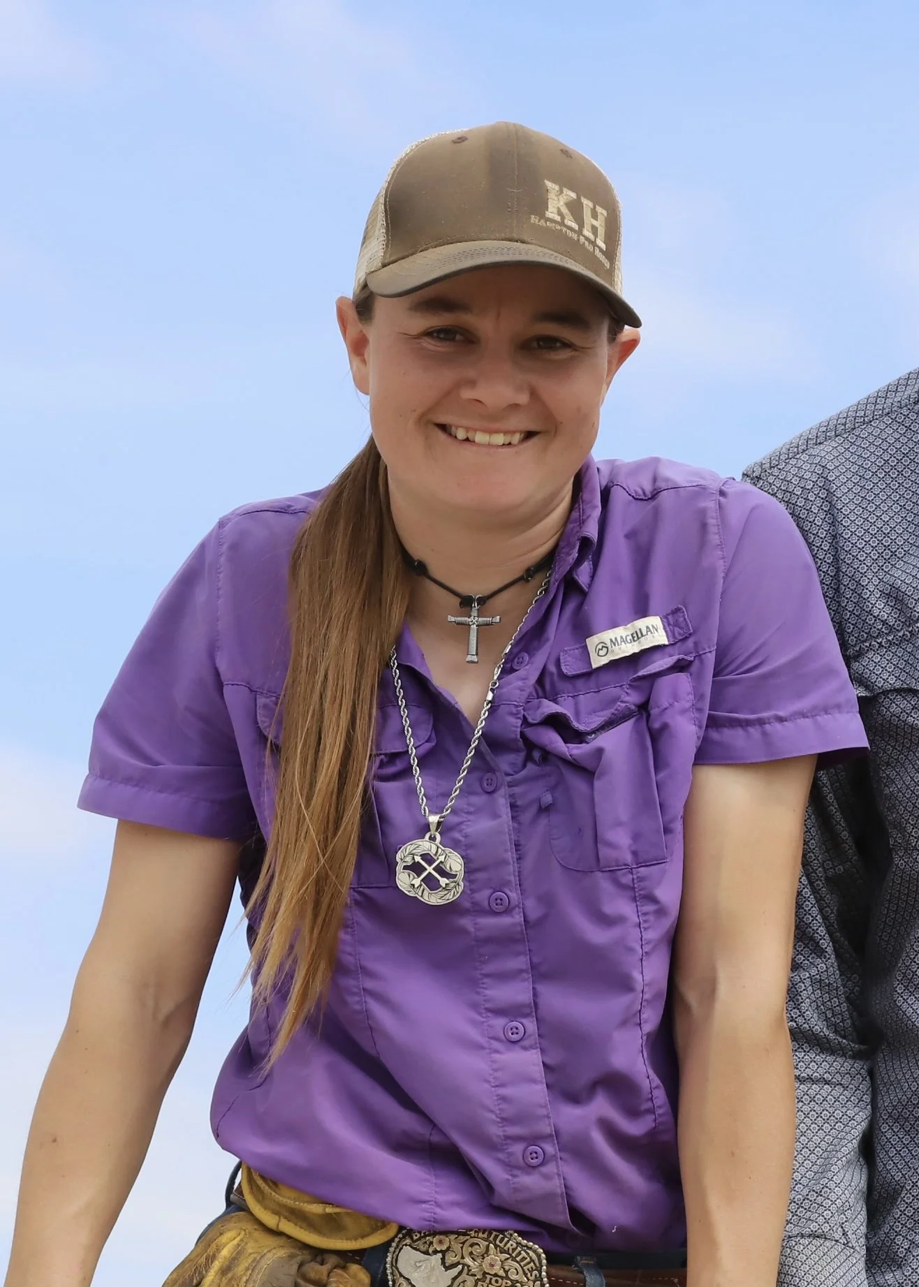 World champion saddle bronc rider and now pickup man. Sean and Pam run a ranch in Kansas. Pam also times our rodeos